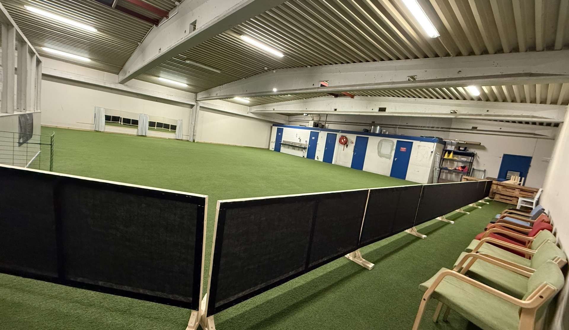 - Sittesonen er flyttet fra kroken i trappa til ene kortveggen, bak gjerder. Nå kan publikum sitte avskjermet fra de som trener, og de som trener har fri bane inn i hallen.